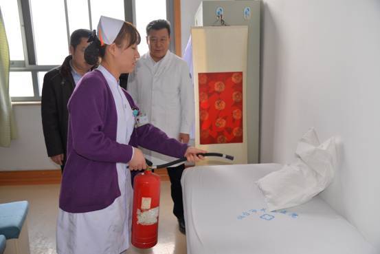 此次查房(fáng),安全生(shēng)産工(gōng)作(zuò)是重點領域,院領導仔細查看(kàn)分(fēn)布在門(mén)診及病房(fáng)的消防設施的完好情況,在頸肩腰腿痛科、心病科,劉院長現場抽查值班護士,讓她們演示滅火(huǒ)器材的使用方法,護士們對操作(zuò)消防器材動作(zuò)不夠到位,并提問(wèn)護士長,在遇到火(huǒ)災等緊急情況該如(rú)何處理,護士長回答也不夠全面,随後電話(huà)撥打了消防監控室的電話(huà),考察消防監控室人(rén)員(yuán)處理緊急情況的反應速度。