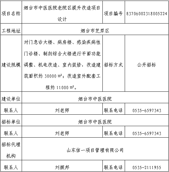煙台龍軍中醫院有限公司老院區提升改造項目設計(jì) 中标結果公示