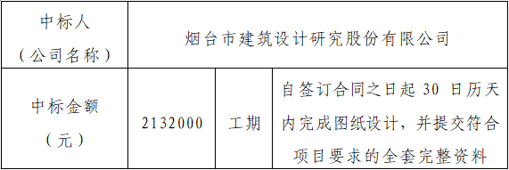 定标地點:煙台市公共資源交易中心