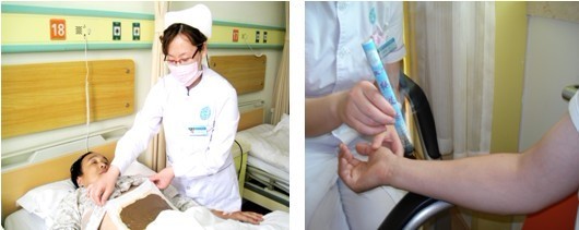 2011年(nián)5月,根據醫院提出創建中醫特色護理示範病房(fáng)的工(gōng)作(zuò)要求,護理部制定了詳細的中醫特色護理示範病房(fáng)實施方案。經醫院研究确定了保健科、腦病科、脾胃科3個病區作(zuò)爲中醫護理示範病房(fáng),并舉行了挂牌儀式。要求3個病區嚴格按照(zhào)實施方案制定科室具體(tǐ)的中醫特色護理實施方案,将中醫護理落到實處,讓病人(rén)享受到經濟、便捷、安全、有效、無創的中醫護理治療。(圖爲中醫護理示範病房(fáng)護士爲病人(rén)進行中藥穴位外敷、穴位艾條灸治療)
